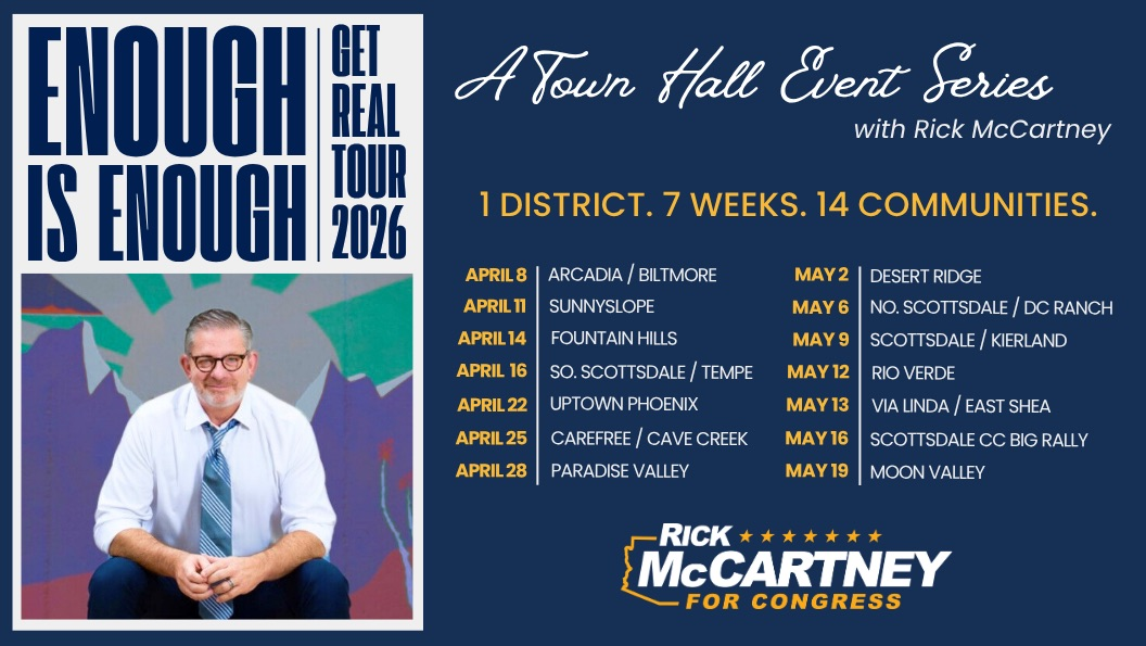 Please join us for your neighborhood’s Town Hall event. We will be in 14 communities for a total of 7 weeks talking to the people of Congressional District 1 (AZ-01). With your request, we will match you to ONE Town Hall in the community you are registered to vote in. (Space is limited.)